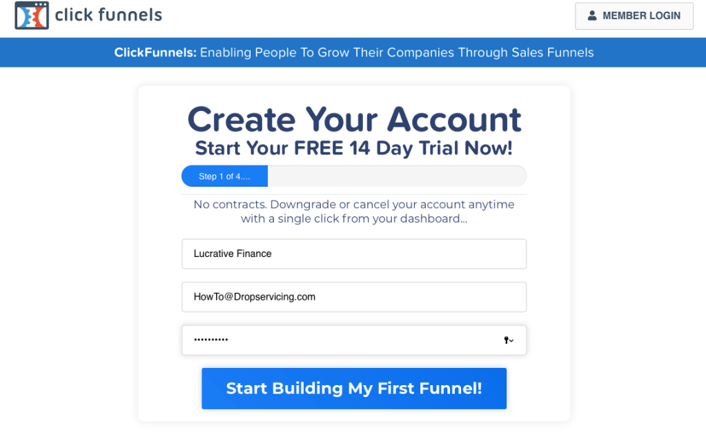 Step 1: Sign Up To ClickFunnels Tap here By opening the link above you will land on a page like this: 👇